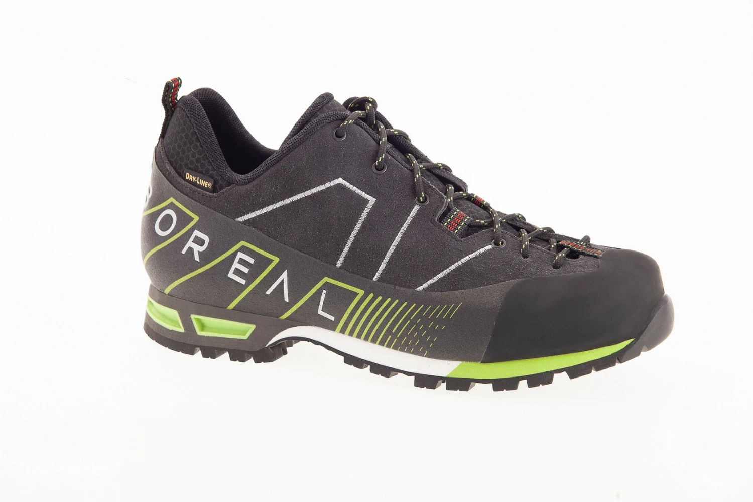 Der „Drom“ von Boreal bietet optimale Performance im Zustieg zu alpinen Kletterrouten und im Klettersteig. Zusätzlich verfügt er über eine nicht zu steife Sohle, die ein enorm gutes Abrollverhalten hat. Dadurch sind sowohl lange Passagen auf befestigten Wegen als auch Städtetouren am Restday kein Problem. Das macht den „Drom“ zum idealen Schuh für den gesamten Kletter- oder Bergurlaub. Ist das Wetter einmal nicht so prickelnd, besticht der Approachschuh von Boreal zusätzlich mit einer wasserdichten und atmungsaktiven Membran, die den Fuß vor Feuchtigkeit schützt. Optimalen Halt geben der umlaufende Geröllschutz und die kletterschuhtypische Schnürung bis in den Zehenbereich.