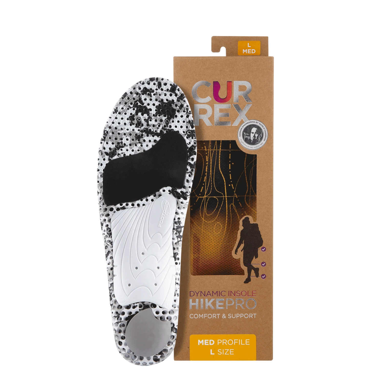 Tausche einfach die standardmäßige Einlegesohle deines Wanderschuhs gegen die Currex Hike Pro aus. Durch die dynamische Fußführung und Unterstützung wird dein Fuß unterstützt und dadurch vorzeitige Ermüdung vorgebeugt.