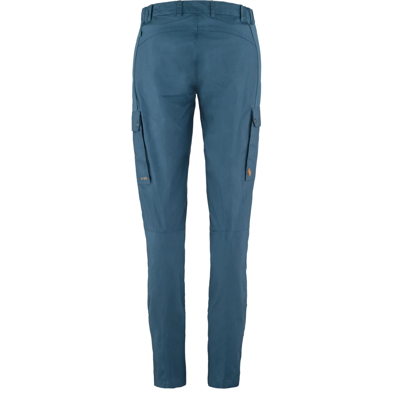 Die Stina Trousers von Fjällräven ist eine strapazierfähige Outdoorhose, die durch ihre Stretcheinsätze trotzdem genügend Bewegungsfreiheit schenkt. Die schmal zulaufenden Beine sorgen für einen femininen Sitz und der Stretchbund verhindert unangenehmes Drücken am Bauch. Durch das schlichte Design und die dezenten Beintaschen kann sie durchaus auch im Alltag getragen werden.