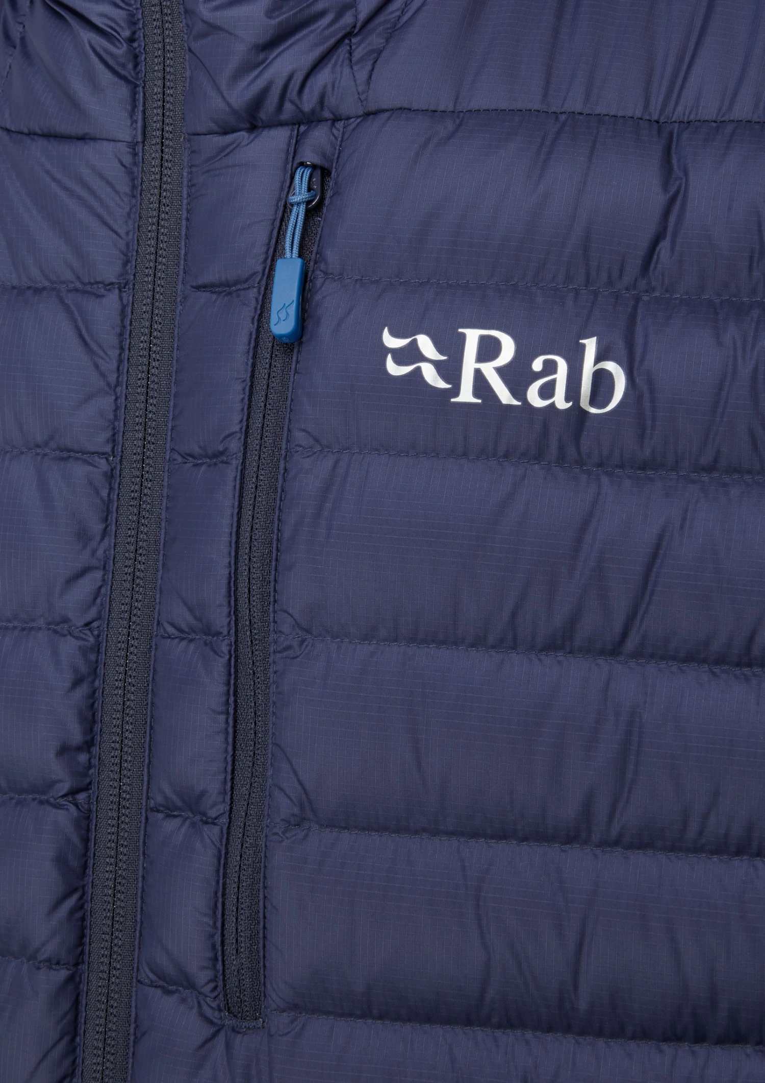 Die Microlight alpine von Rab ist eine leichte Daunenjacke, die durch die zonierten Mikro- und Nanokammern für beste Isolation sorgt. Durch ihr kleines Packmaß ist sie die beste Lösung, um der Kälte zu trotzen. Die recycelten PURE Daunen sind nicht nur GRS-zertifiziert, sondern auch wasserabweisend und haben eine Bauschkraft von 700. Aber nicht nur die Daune ist recycelt, sondern auch der Rest ist aus wiederverwerteten Materialien.