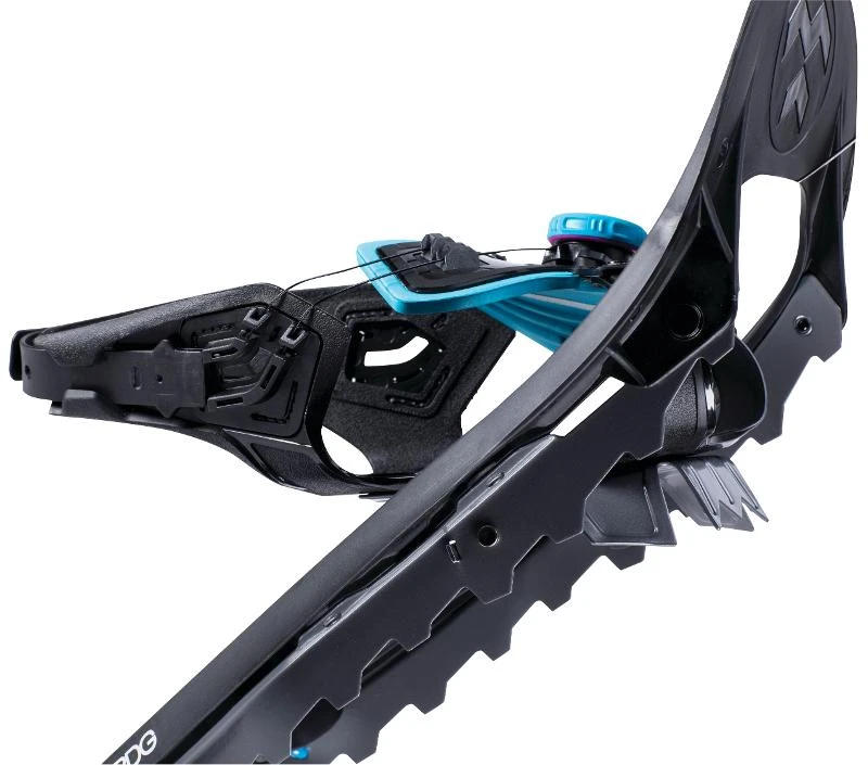 Die Zacken im vorderen Fußbereich helfen dabei, während dem Bergab-Gehen die Kontrolle zu behalten. Im Aufstieg bieten sie gerade auf etwas festerem Schnee das gewisse Extra an Halt.